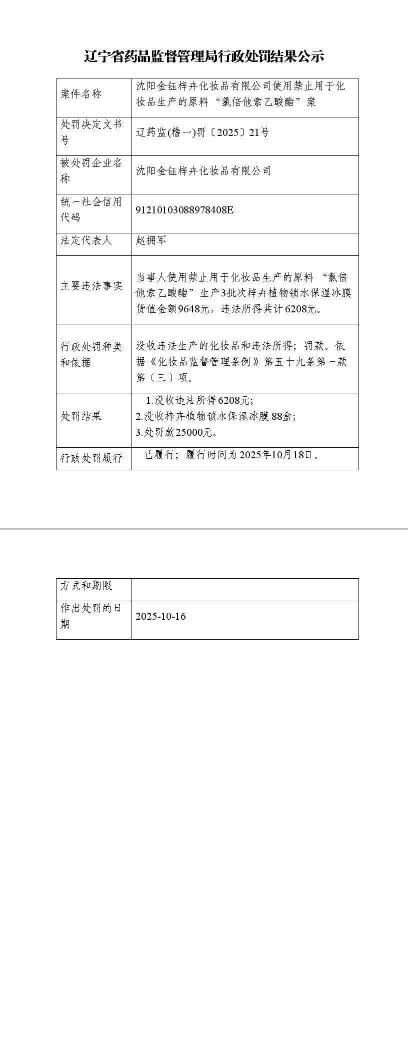 辽宁省药品监督管理局行政处罚结果公示(2025年第30期)