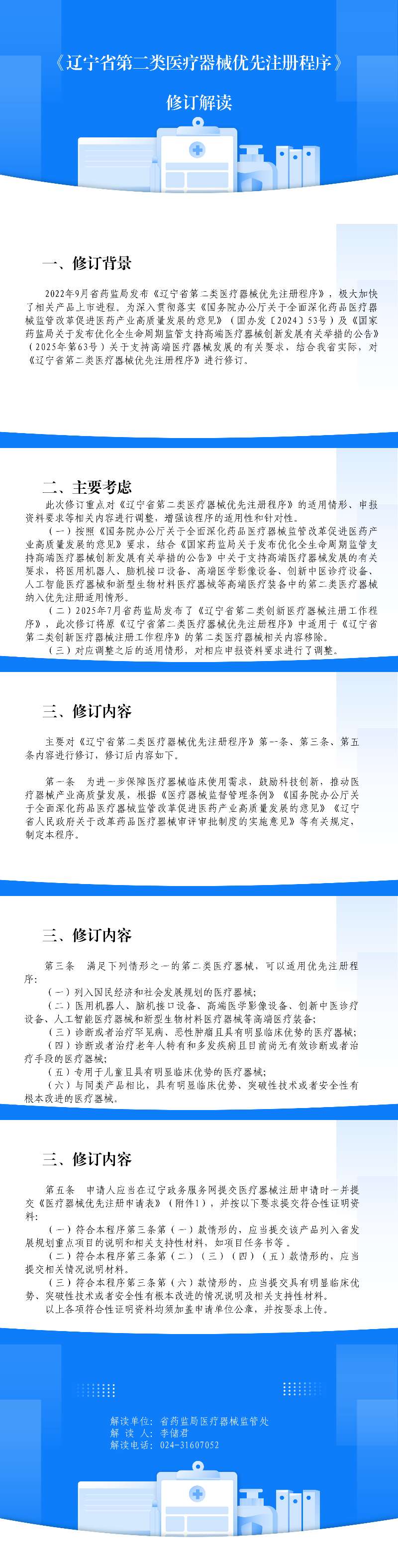 《辽宁省第二类医疗器械优先注册程序》 修订解读